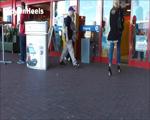 LadyOnHeels spielt und zeigt ihre Füße mit Nahtstrümpfen und sexy High Heels in der Öffentlichkeit.