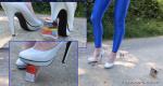 Das Wetter wird wieder besser, so dass ich jetzt im Freien meinem Hobby nachgehen kann und kleine Kartons auf dem Weg crushen kann. Ich trage meine Spandex-Leggings, die aus unterschiedlichen Materialien zusammengenäht ist. Dazu meine schwarzen Pumps die schon so manchen Karton zertreten haben. Viel Freude beim Ansehen.