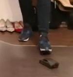 Lady Wish crush some paper in wonderfull shoes barefoot