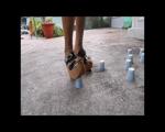 I had a little pool party over the weekend at my house with a few select friends and a couple of my working girls. The next day there was some clean up to do so I woke up Sophia, who had crashed on the couch with her 'date' the night before, and put her to work. Still in her 'work' clothes, a short tight black spandex mini dress and sexy black wedges, she starts crushing the remaining paper shot glasses and a few snacks left over. Her tight dress seems to keep riding up every time she bends over but of course she doesn't mind. This clip has some hot views of her bending over showing her ass in black panties, as well as those sexy legs while stomping the cups, peanuts and a few cigarettes. If you love her crushing clips, you'll love this one too. I also added some slow motion scenes. She shows no mercy taking care of business.